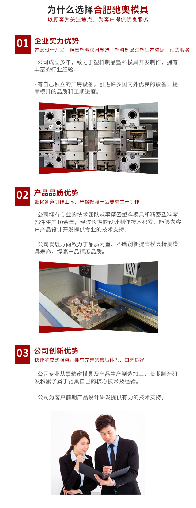 - 合肥馳奧模具有限公司始建于2009年,2014年更名為合肥馳奧模具有限公司。主要從事汽車、家電、新能源、智能家居、醫療器械零件等大中小型模具及精密塑料模研發、制...
